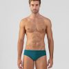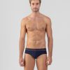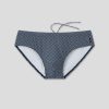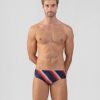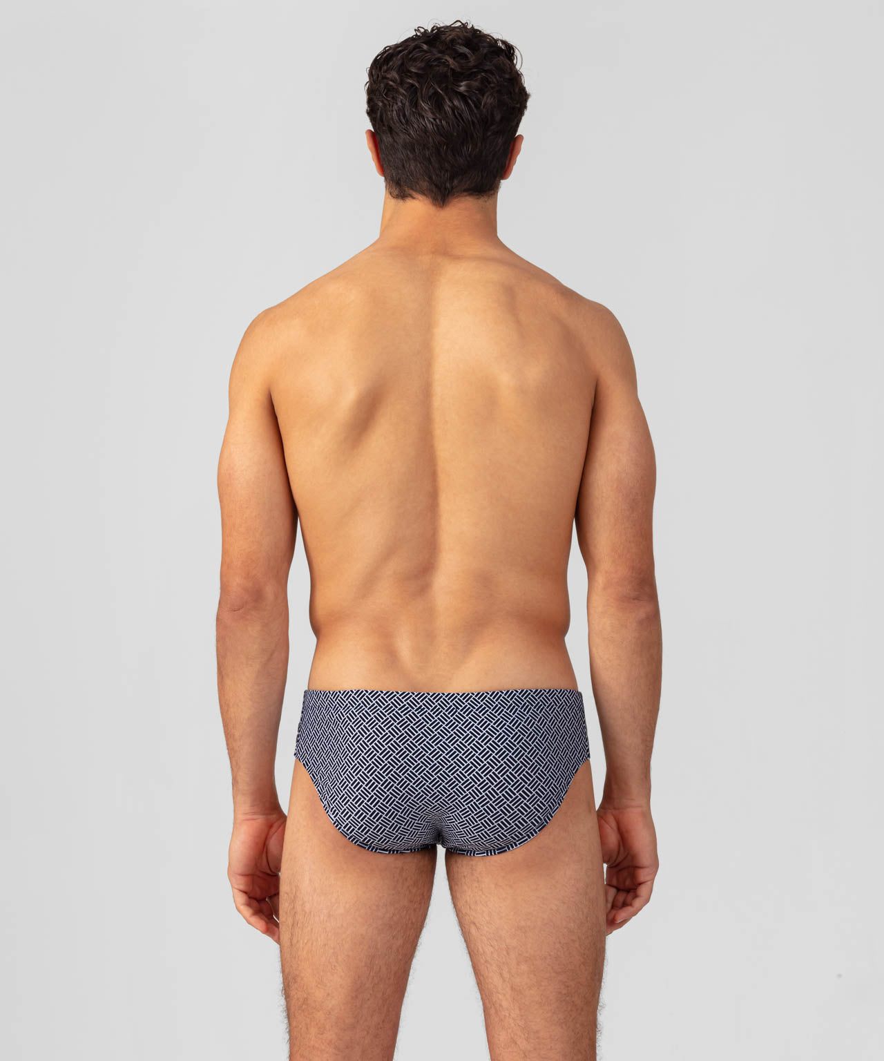 Inspired by the cult Brazilian water polo briefs of the early 80s, the swim briefs is revisited with thin vertical green stripes. Made in an extra-thick but quick-drying Italian-made polyamide for optimized silhouette and guaranteed fit swim after swim. Breathable micro-mesh lining. Elastic waistband with interior drawstring. Ideal for frequent pool use. Featuring the double black-lacquered RD signature eyelets.