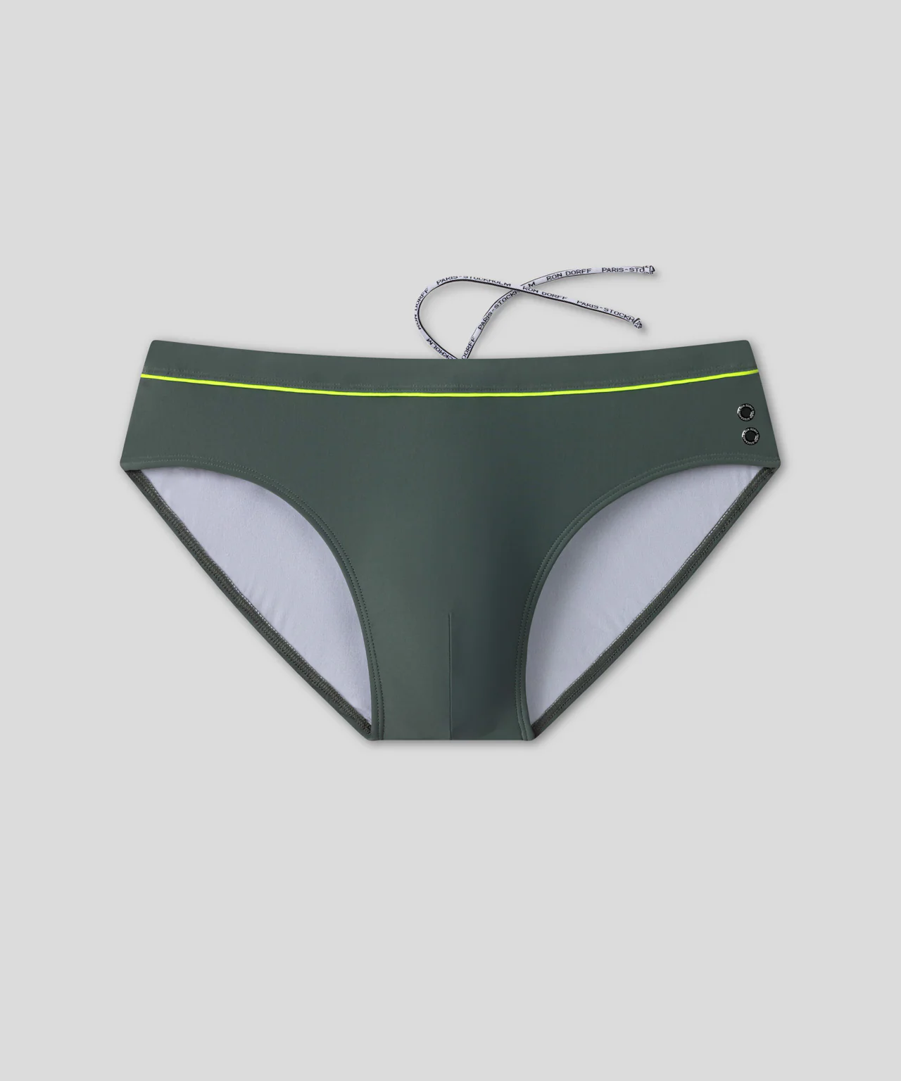Ron Dorff Men’s Swim Briefs W. Neon Piping | Green Shadow & Neon Yellow