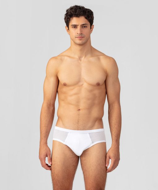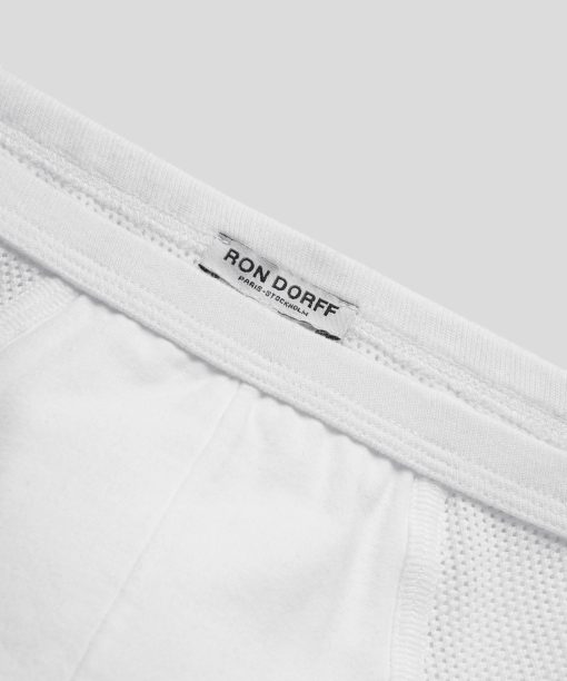 The one-and-only RD Y-front briefs inspired by a model developed for the Swedish Army in the 70s. Now offered in a vintage cotton-mesh with a doubled front in fine cotton jersey. A dash of elastane guarantees the fit, wash after wash. Elastic waistband covered by fabric with reinforced stitching for improved comfort. The two discrete RD eyelets embroidered tone-on-tone on the side. The mesh will shrink one size after wash.
