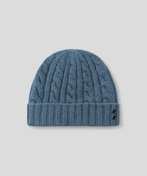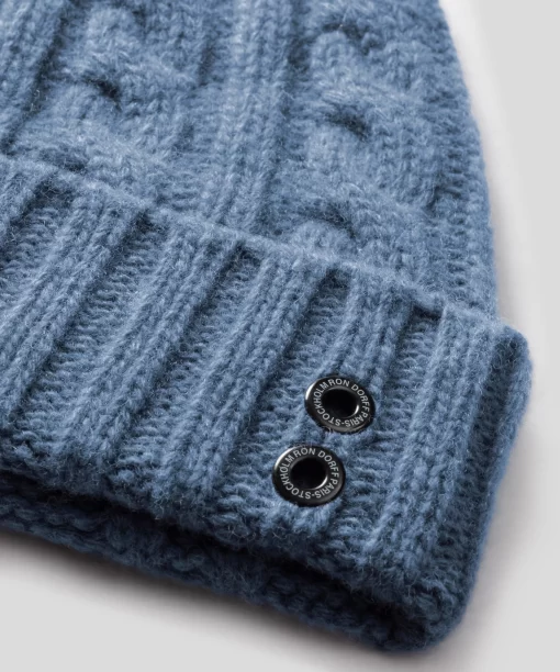 The RD winter must-have accessory, the Nordic Ski beanie in ultra-soft, breathable mix of wool and pure sports cashmere. Featuring a cable-knit construction and finished with a ribbed folding. Featuring the double, black-lacquered RD eyelets on the side.